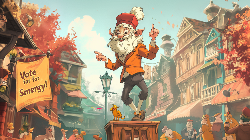 And so it went. Smergy’s campaign, in the days that followed, continued down a path paved with comedic mishaps. A passionate debate against littering turned into a spirited defense of its necessity for job creation. An earnest pledge to improve traffic flow ended in a proposal to replace all stop signs with roundabouts – a concept that sent shudders through the Manhattan driving community, known for their less-than-stellar navigational skills. There was even the unforgettable incident with an over-enthusiastic leaf blower and a flock of startled pigeons, best left undescribed.