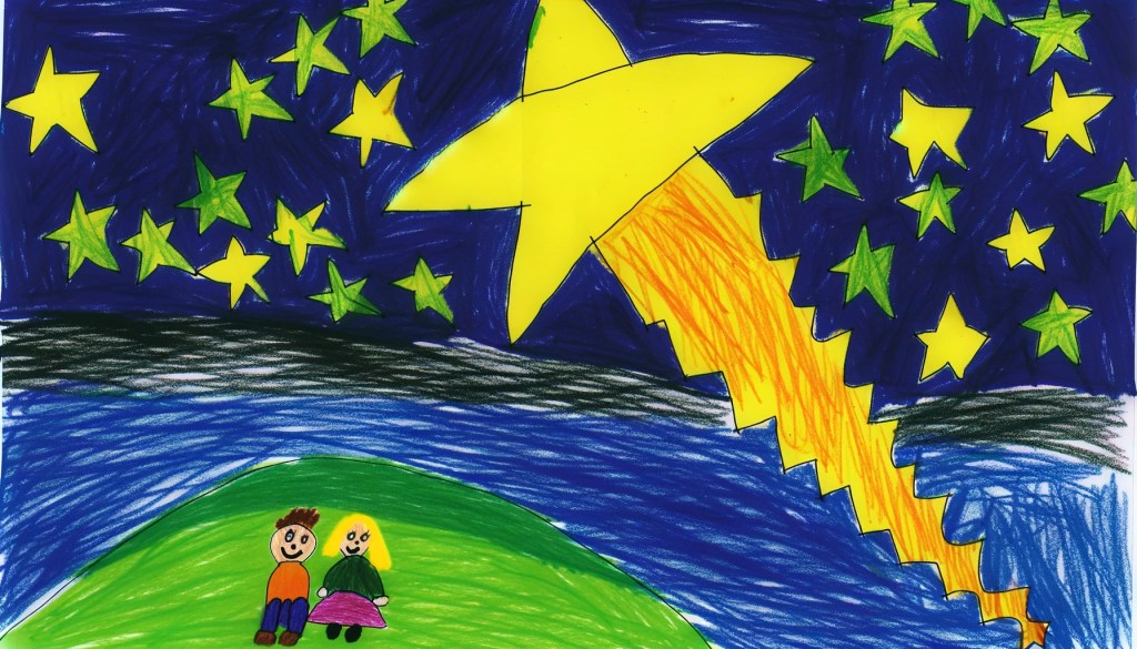 The hill became a place of pilgrimage, where people came to marvel at the scar on the earth. They told the tale of the two innocents lost, and with wry smiles, pointed out the absurdity of a star that went to war against a simple compliment. On the hill, a carving and a reminder, passed down from generation to generation “Don’t twinkle in your lover’s eyes, the stars…they get awfully jealous.”