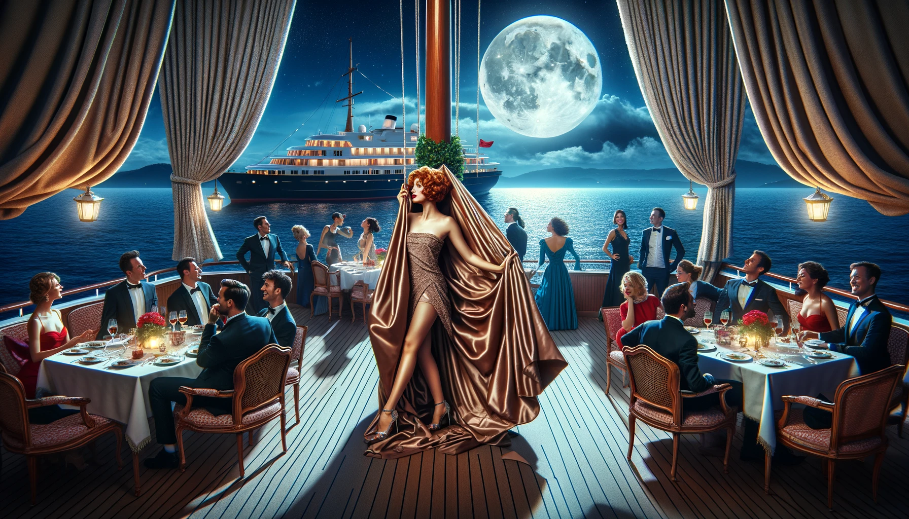 The gala was everything Penny expected from a gathering of the eccentric elite – and more. Guests sported outfits defying definitions of both fashion and common sense, conversations flowed at a rapid-fire pace filled with non sequiturs, and the music thrummed with an energy that seemed to vibrate through the very deck of the yacht. As Penny navigated the throng, balancing hors d’oeuvres precariously on tiny spoons and dodging the occasional rogue feather boa, a wave of heat washed over her, and it had nothing to do with the crowded room.