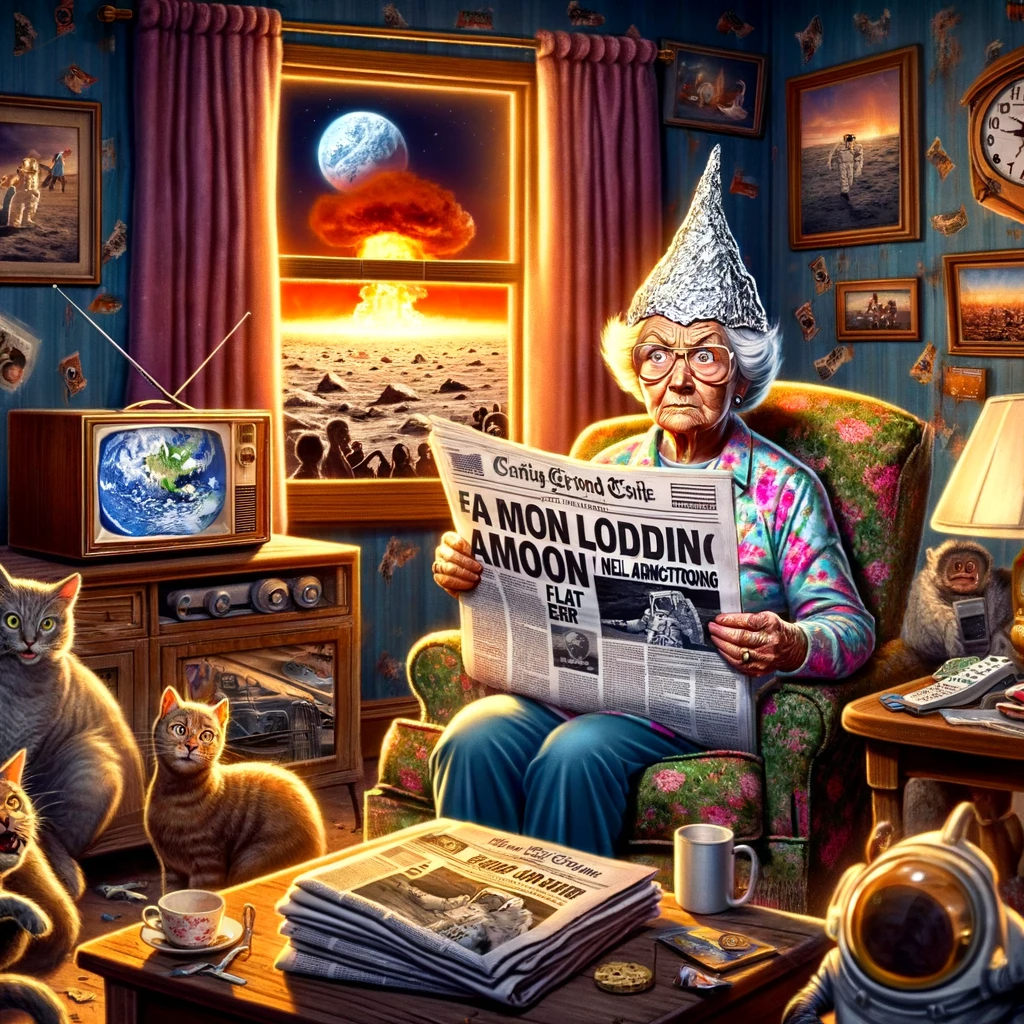 Freida, in her wrinkled glory, scowled at the wrinkled headline. “Moon landing: another giant leap for… LIES?” she sputtered, the teacup nearly toppling from her trembling hand. She wasn’t just skeptical, she was a champion of the “no way, José” school of thought. And the moon landing, oh, that was the Everest of her disbelief.
