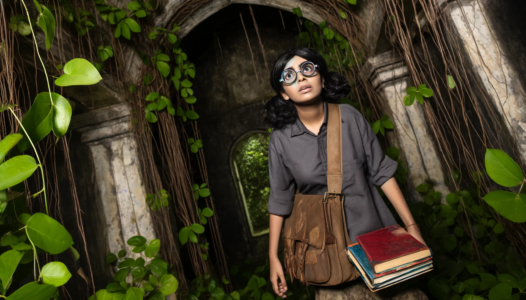 Shiva remained oblivious, her nose glued to the dusty parchment, scribbling furiously in her notebook. A slimy tendril brushed her leg – an oddly textured vine, perhaps? So interesting! She made a quick note. M’KroSF’Tclpy loomed closer. Shiva frowned, absorbed in deciphering the ancient language. M’KroSF’Tclpy ‘s power was a monstrous hum at the edge of reality. All Shiva cared about was the next faded word. All M’KroSF’Tclpy cared about was ‘HwCnIHelpUB DevouredToday’.