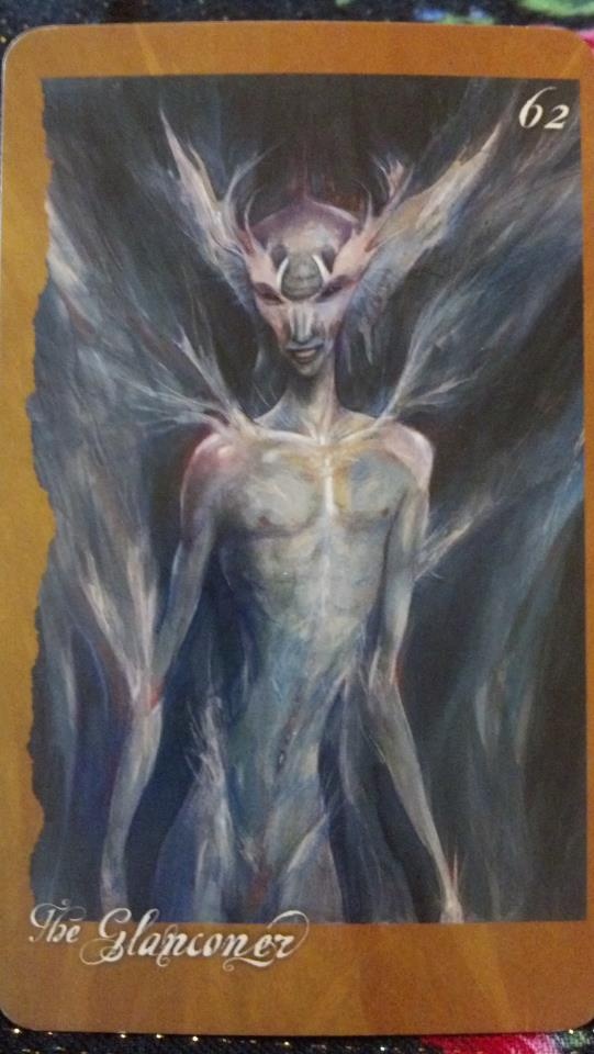 Upon reading the rest of the Glanconer’s entry, I see that a reversed Glanconer is trying to tell us that someone is pretending to be someone they’re not. This fits in with the feelings that I experienced and the realizations that hit home during our conversation. I had tried to play at being a Demonolator when it was not my place to do so. Not only do I have a deeper respect for my Left Hand peers, but I have a new, profound understanding of my role in my own path.
